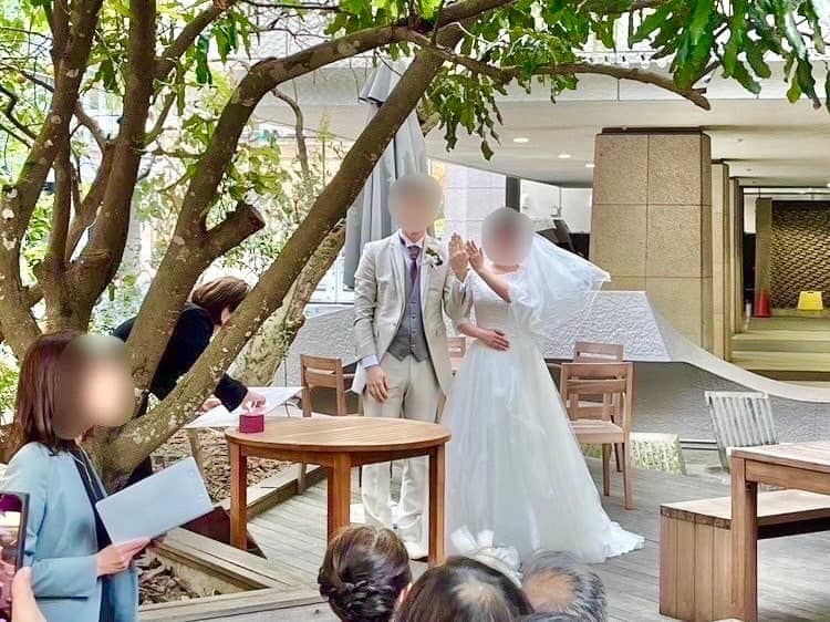 人前式を取り入れたアットホーム婚は、緑と黄色の爽やかなガーデンテラスで行われました☆