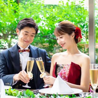 人前式を取り入れたアットホーム婚は、緑と黄色の爽やかなガーデンテラスで行われました☆